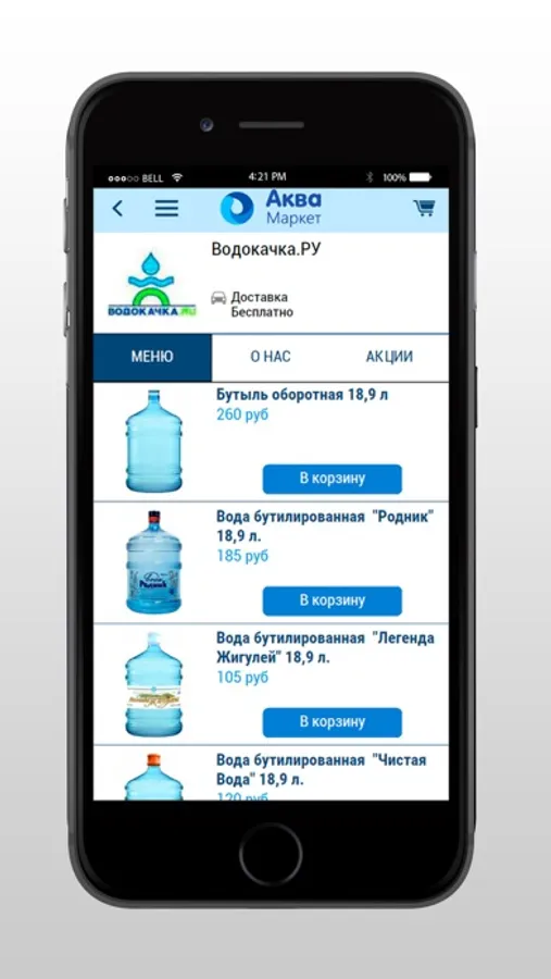 АкваМаркет - это приложение-агрегатор, в котором мы объединяем компании по доставке питьевой воды домой и в офис.