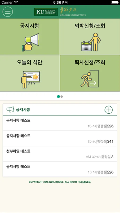 건국대학교 쿨하우스 관생들을 위하여 공지사항, 외박신청 등의 기능을 제공 합니다.