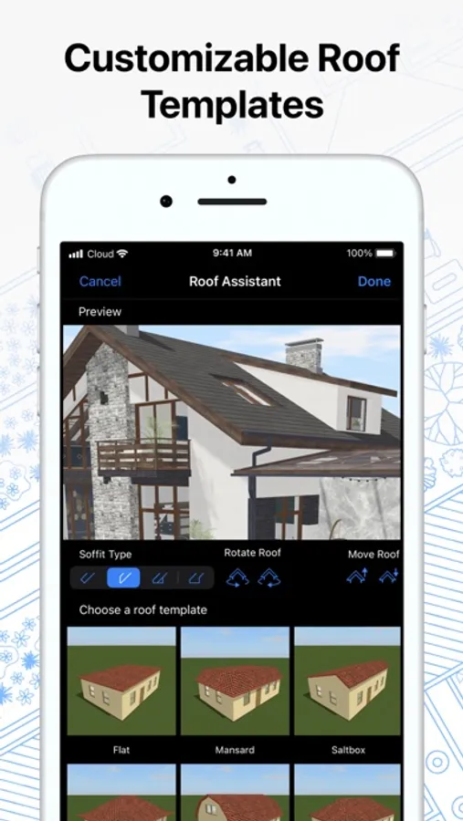 • Work with the fully customizable roof; create corner windows and complex openings.