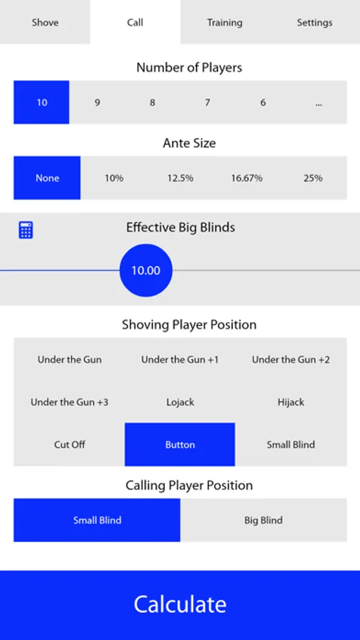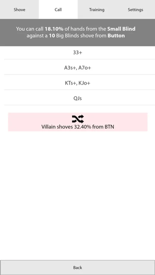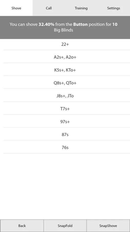 • With SnapShove Pro you get access to the Call mode – calculating when to call an all-in and when to fold