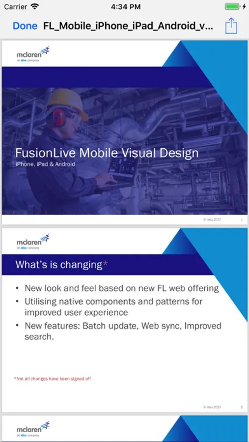 Idox FusionLive allows you to make documents available for offline viewing and keep them up to date with automatic synchronization when you are back online. You can also switch between workspaces and access your FusionLive messages and workflow alerts.