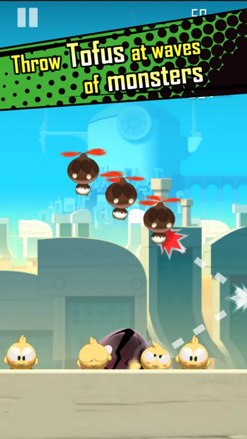 * Become an expert at tossing the cute but tough Tofus, and destroy enemies who have a variety of weapons and protections