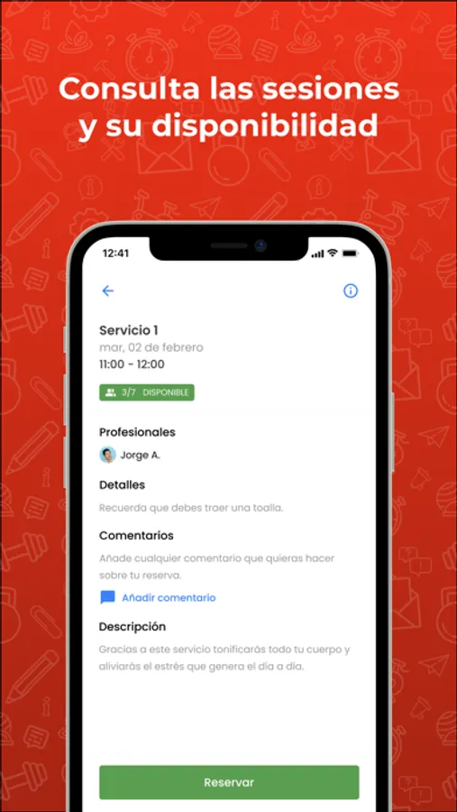 • Consulta las sesiones que ofrece el centro, así como su disponibilidad.