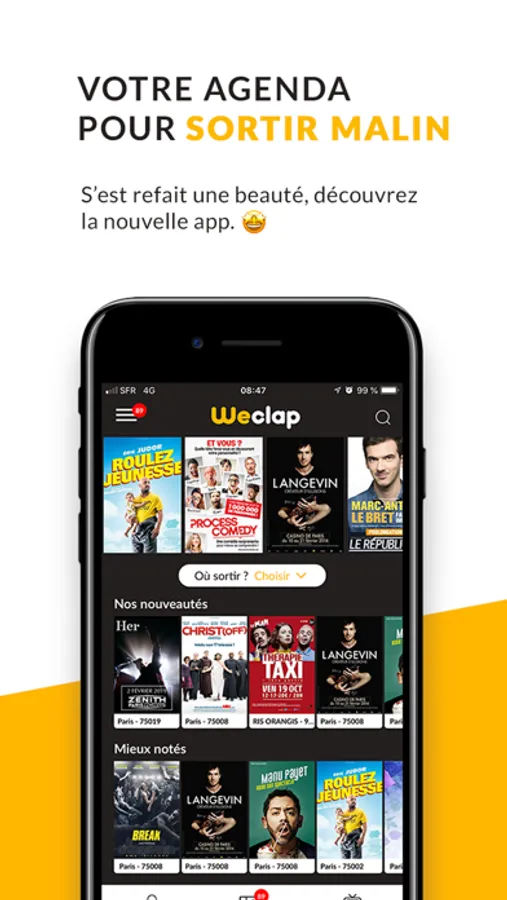 Eh bien non, grâce à Weclap vous profitez tous les jours de très très bons plans pour vos sorties, spectacles, rencontres sportives ou événements culturels.