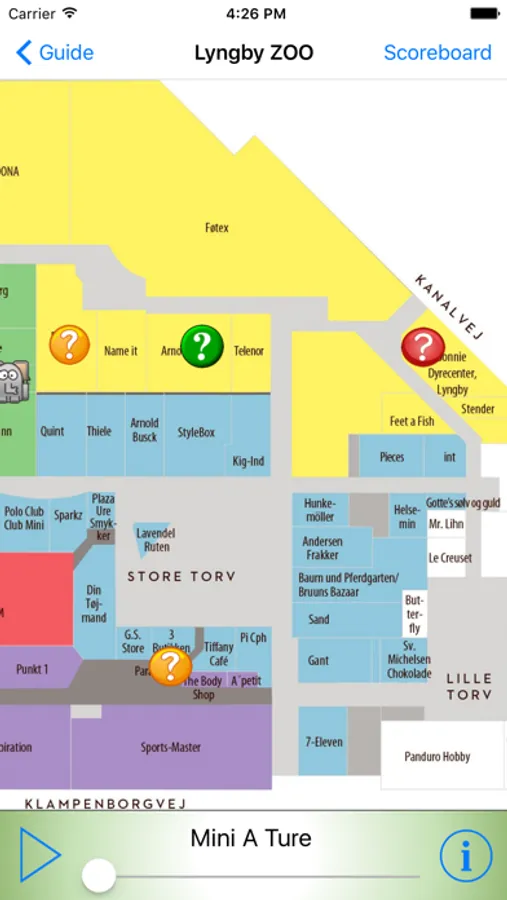 The app presents various treasure locations on a map which players then visit and solve challenges. During the treasure hunt you earn points by finding treasures and solving challenges at corresponding locations.