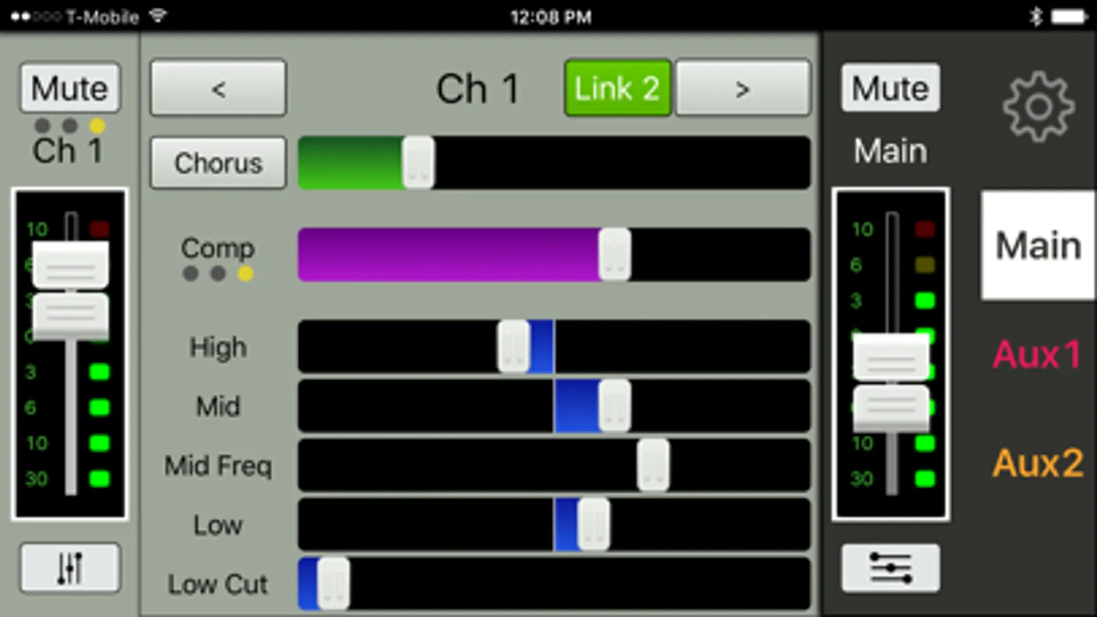 * Channel view gives control over 3-band EQ, low cut, compression and FX send level