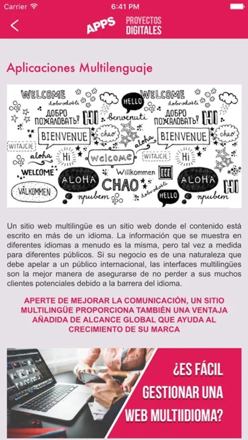 Apps Proyectos Digitales es un equipo de profesionales en el desarrollo de aplicaciones para todos los dispositivos móviles y tablets: a la vanguardia de las últimas tecnologías con el fin de contribuir a la evolución de su negocio en la era actual. Un viaje directo al mundo digital a su empresa.