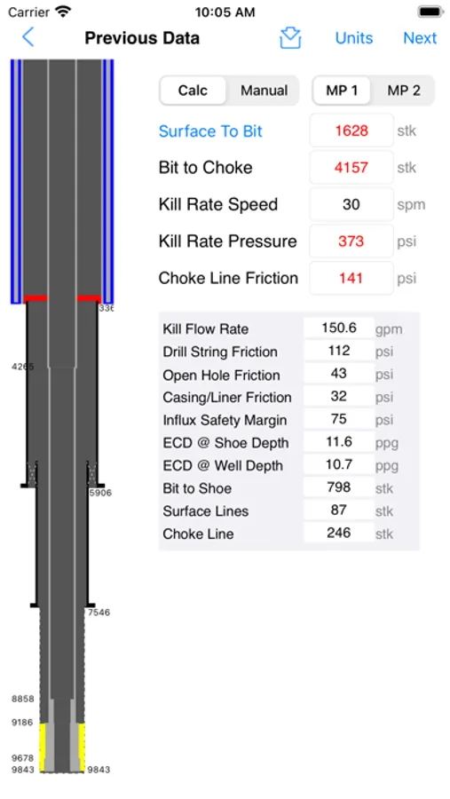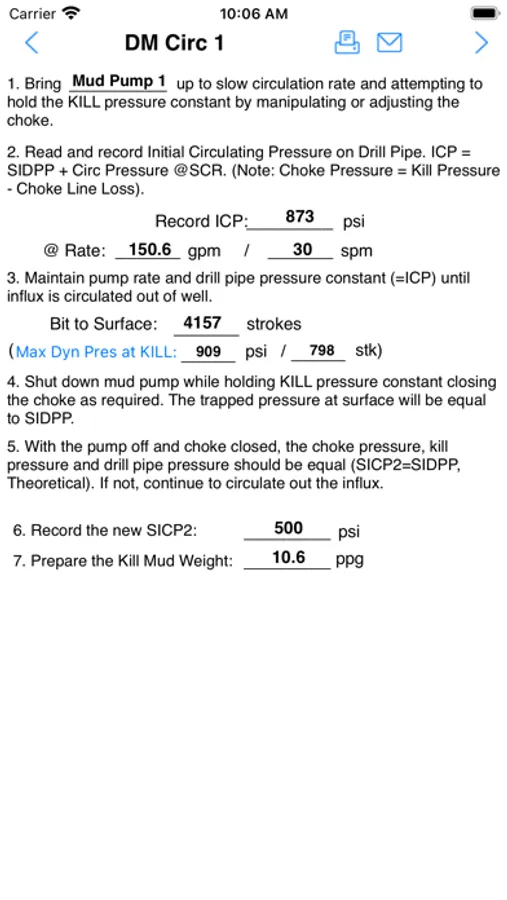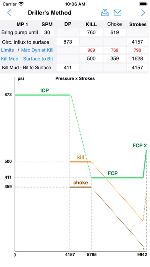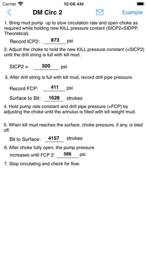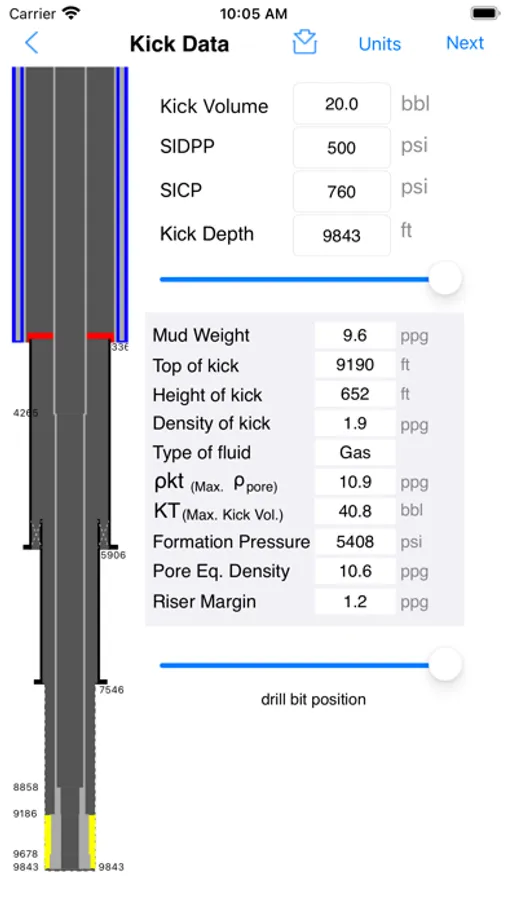 This application uses the basic calculations of the Driller's Method to control oil wells after the occurrence of kick during drilling operations on floating platforms and landing rigs.