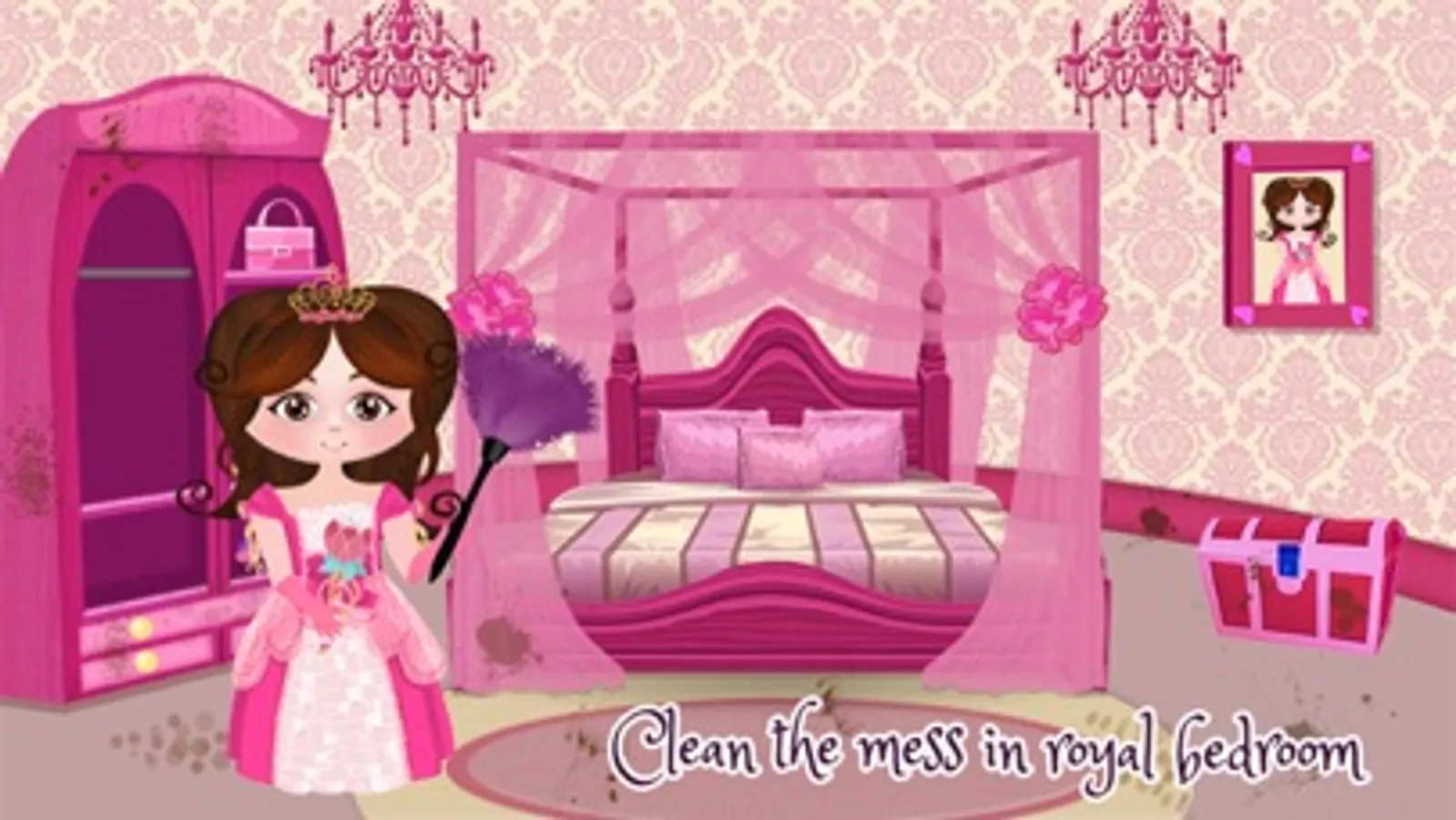 Princess Rozy left her castle and went to an adventurous tour for some days. But when she came back after her visit, she found her castle so messy and untidy. Now she wants to clean up her bedroom, washroom and kitchen but she needs your help for this. Clean the rooms, do laundry and put princess things in order to make a good impression. Throw the rubbish away. At the end relax playing dress up princess.