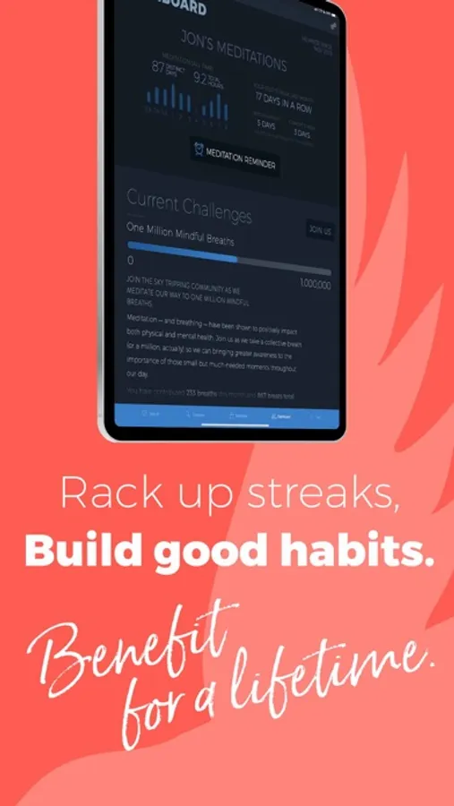 Meditation has been scientifically proven to increase mental sharpness, reduce stress and anxiety, and even improve physical health. Despite having an interest in meditation, most people don't do it for one simple reason: they don't know how. That changes today: as Eckhart Tolle famously said, "A single breath in and out is a meditation." It's that easy! Better yet, you can now supercharge your meditations by breathing to the sights and sounds of the ocean, deep forests, desertscapes, or serene winter views with our new meditation tool. Choose short, focused meditations whenever you need an extra mental boost or moment of relaxation, and rack up streaks by meditating once or more a day. Breathe, enjoy, repeat! Sky Tripping even integrates with HealthKit, recording your mindfulness exercises directly to Apple's Health App.