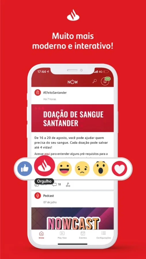 O aplicativo NOW é um feed de notícias sobre o Santander Brasil, de uso voluntário, com foco em facilitar o acesso às informações, na palma da mão, em qualquer lugar.