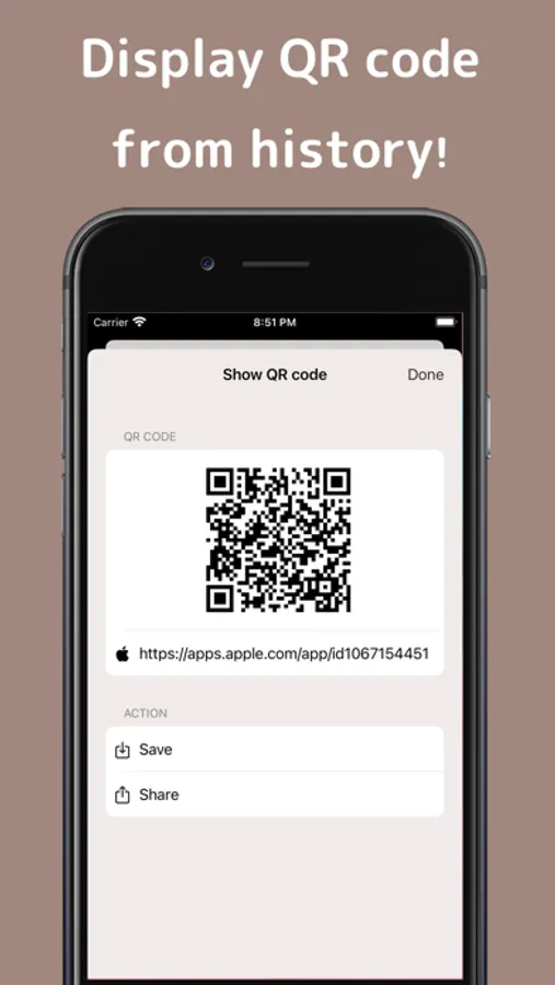 After the QR code or Barcode scanned, being able to display, save, and share.
