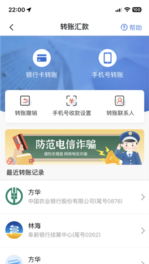 【转账汇款】简化转账流程,让银行卡转账更简单,汇至任意银行均免手续费。