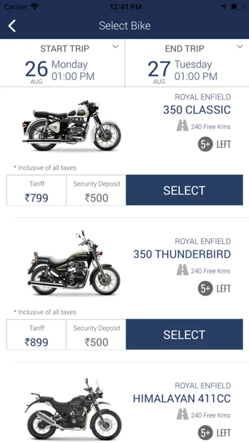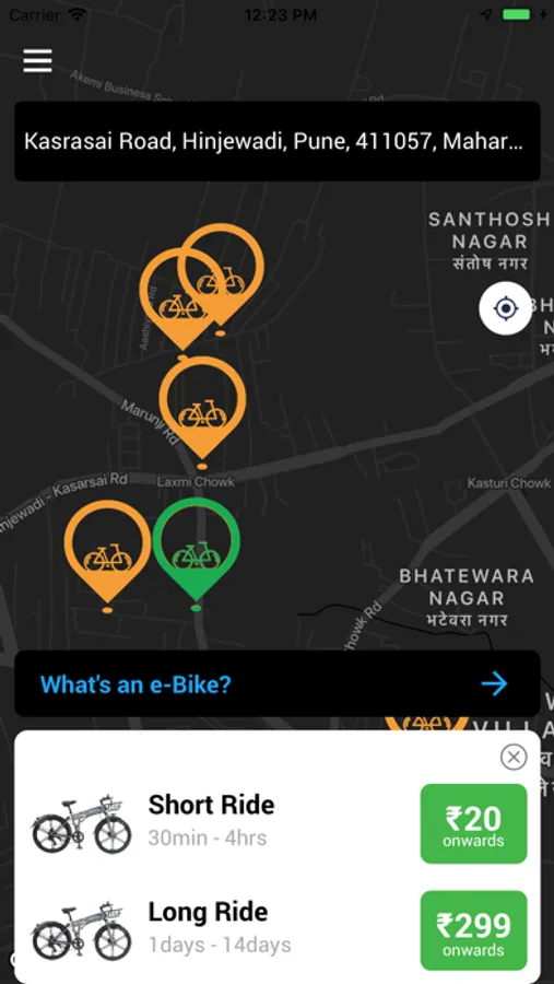 Tap to select if you are to book a motorcycle/scooter or an electric bike