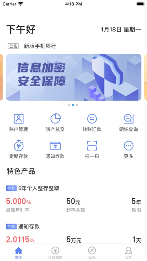 手机银行为您提供账户查询、账户管理、行内转账、跨行转账、本人账户互转、活期转定期、定期转活期、通知存款开立、通知存款支取等丰富的移动金融服务。