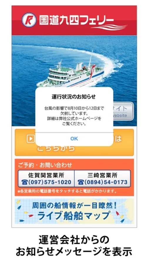 フェリーの運航状況もひと目で把握でき、ご家族でも楽しめる演出を搭載。