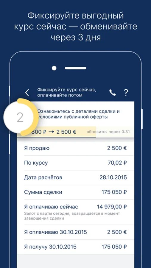 • Осуществить обмен всей суммы через 3 дня по зафиксированному курсу;
