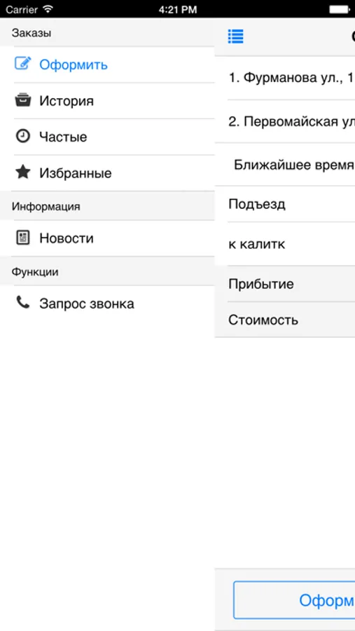Приложение службы заказа такси "Атлас" (2-383-383) в Новосибирске.