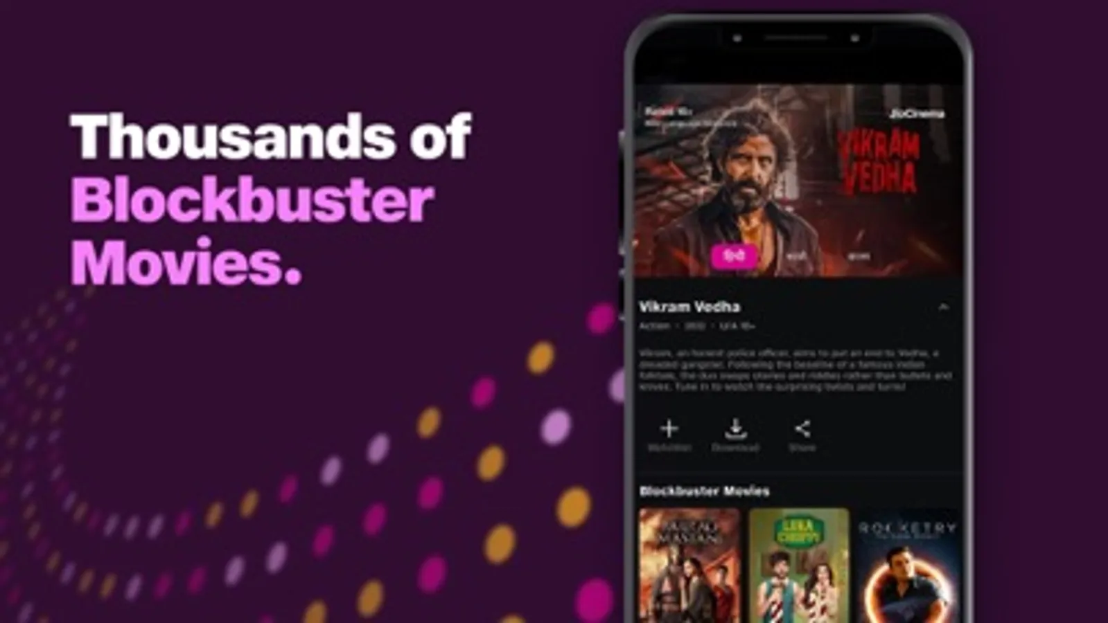 Explore our diverse range of movies across genres ranging from crime, action, drama, and comedy to romance. Start with super-hit library recommendations, including Vikram Vedha, Bhediya, Dasvi, Rocketery, Gangs of Wasseypur, Taali, Roohi, Love Aaj Kal, One Day: Justice Delivered, Luka Chuppi, Stree, Andhadhun, Bazaar & more.