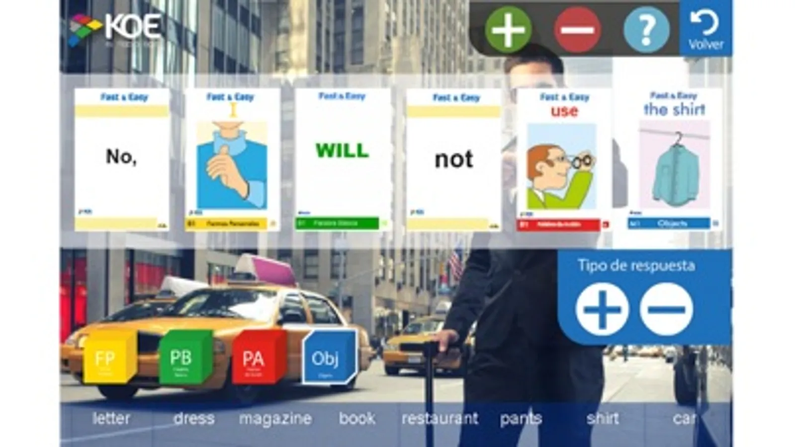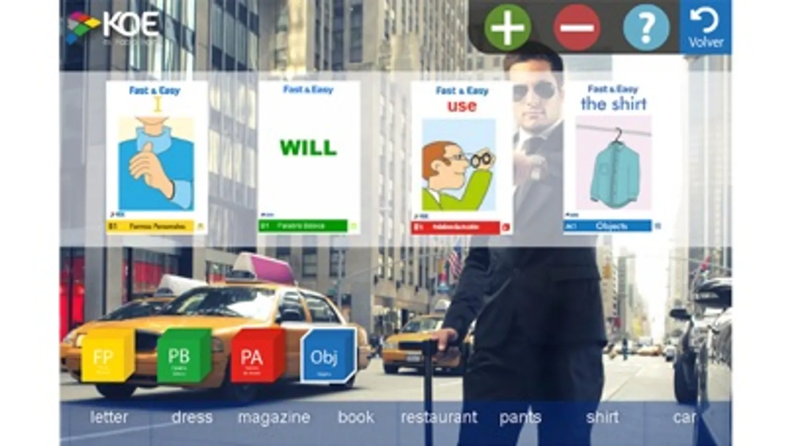 Esta aplicación esta desarrollada para explicar el método Fast & Easy de KOE de manera efectiva. Ademas podrá interactuar con distintas combinaciones de estructuras utilizando nuestras palabras básicas "can - must - will", todas las Formas personales, palabras de acción y los objetos del nivel básico de nuestro programa.
