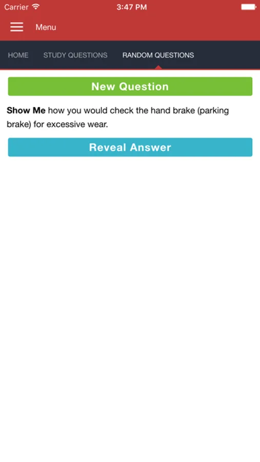 The Random Questions section shows a single question at a time, you can view the model answer by tapping 'Reveal Answer' or show another random question by tapping 'New Question'.