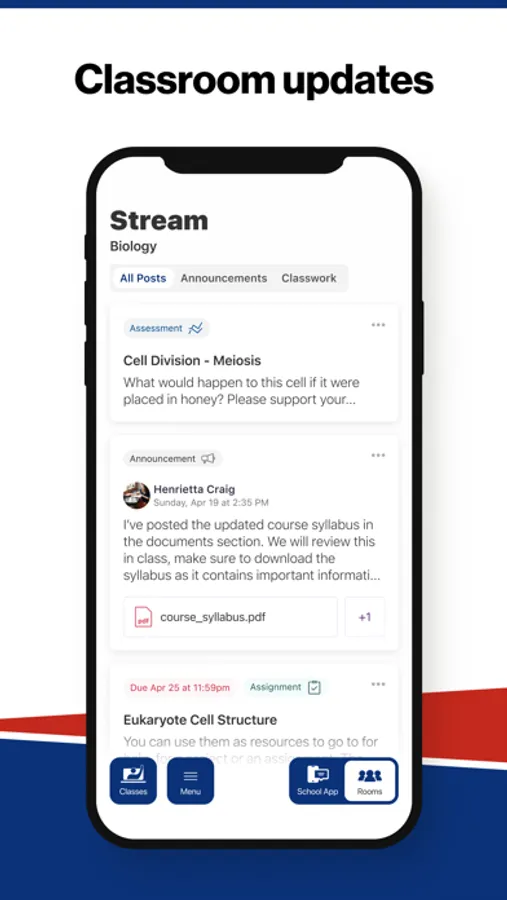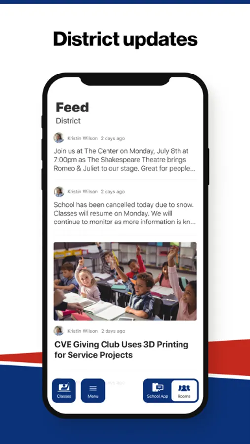 In the Live Feed is where you'll find updates from the administration about what's going on in the district right now. Whether that's celebrating a student's success, or reminding you about an upcoming deadline.