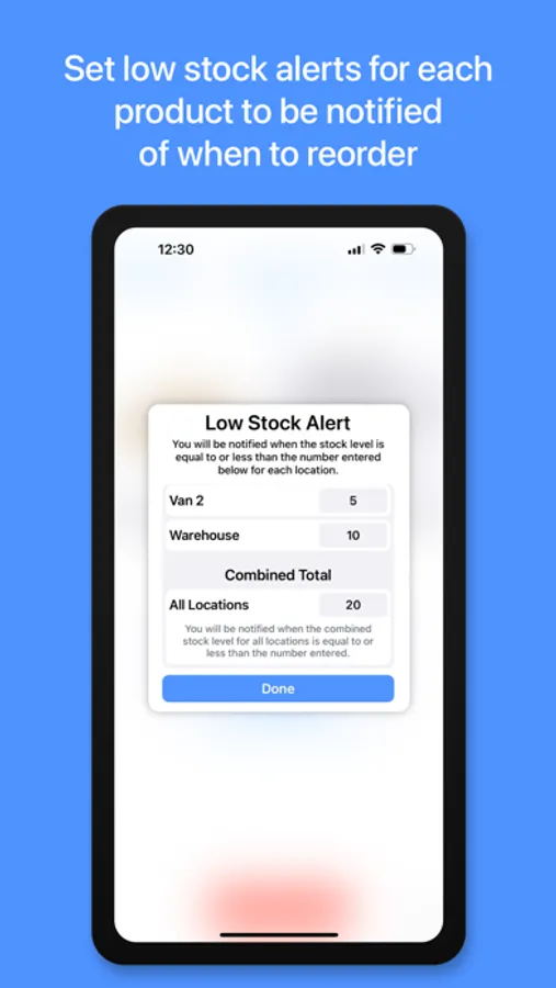 Set low stock alerts for each product in each location and receive notifications when you are running low, so that you can re-order before you run out.