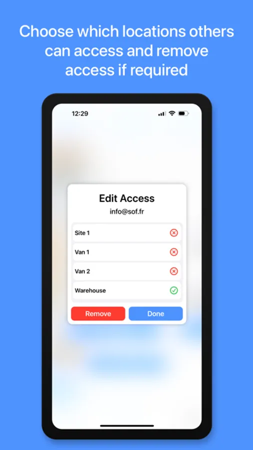 Share your stock list with others to allow them to view and update the quantities of each product. Choose which locations others can access and remove access from specific people if required.