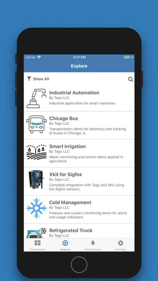 With the TagoIO mobile app for iPhone and iPad, you can visualize and control the operation of your electronic devices in real-time. TagoIO mobile is a powerful and flexible tool that reflects the same configuration of your dashboards set in your account. As you change your dashboards configuration using a browser, you will see the updates immediately effective in your app.