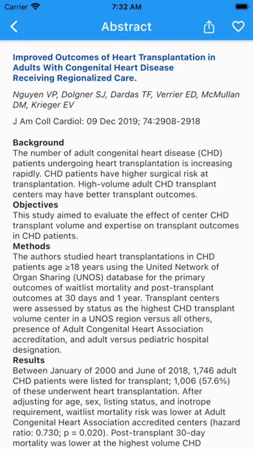 This app makes it easy to keep track of the latest research In cardiology. All recent publications are grouped by topic and impact.
