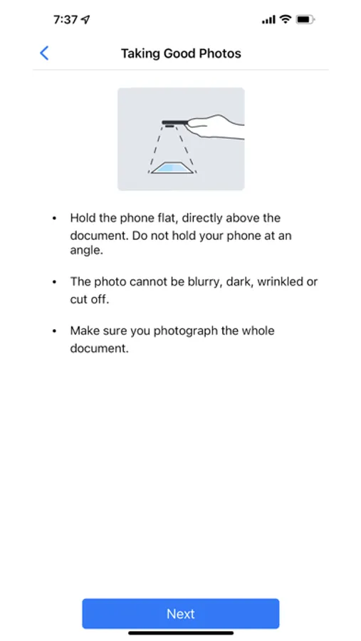 Use your mobile phone or tablet to quickly photograph and submit documents such as pay stubs or a utility bill.
