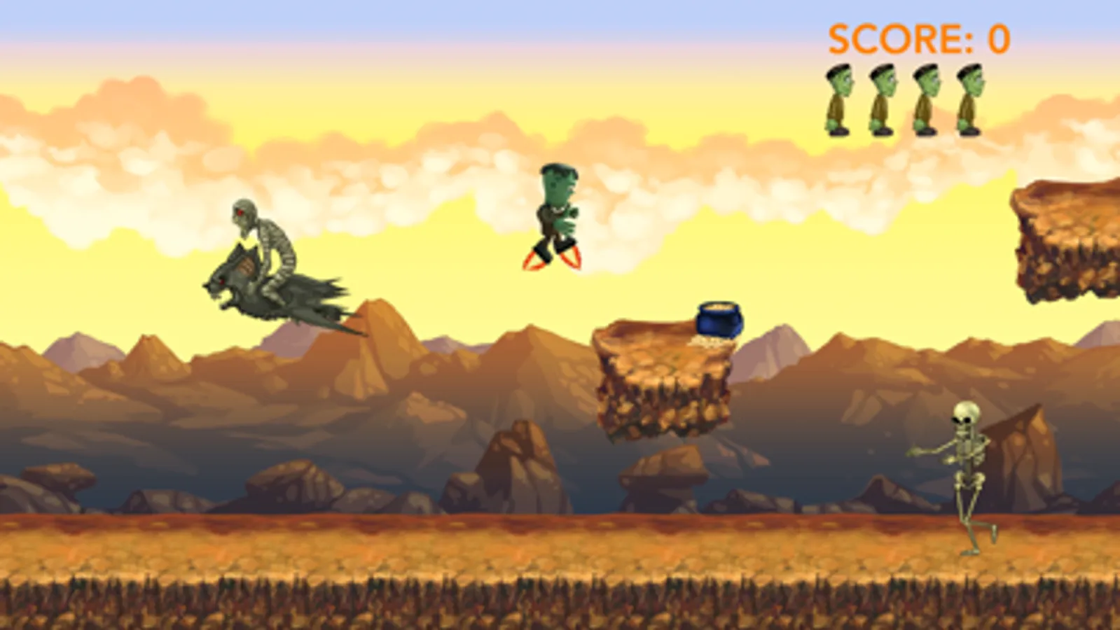 Run with Junior in Jr’s Mad Dash! With only his wits, a vicious right hook and his amazing rocket boots, Junior must traverse a gauntlet of skeletons, zombies, and monsters. Along the way you will pick up gems, treasures and see breathtaking landscapes. No complicated menus, with an easy to use interface. Tap 2 Fingers on the Screen to launch Jr’s rocket boots. While in the air, swipe right to glide. To punch or fall back down, just Tap 1 Finger on the Screen. Have loads of fun as you play Jr’s Mad Dash.