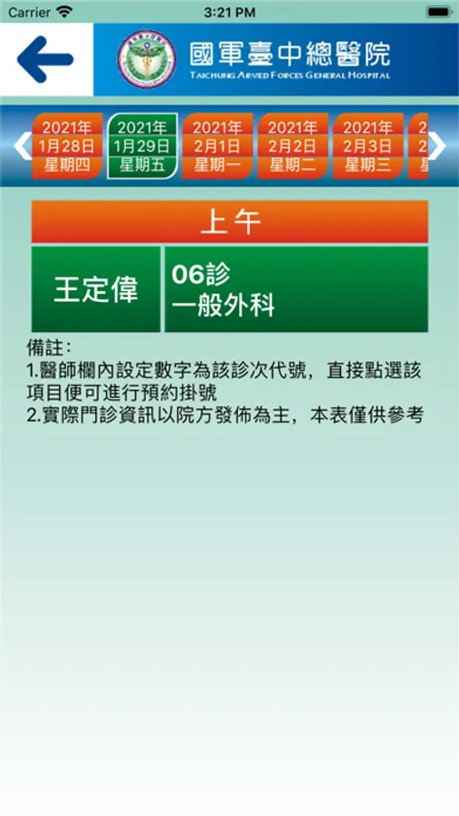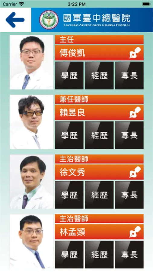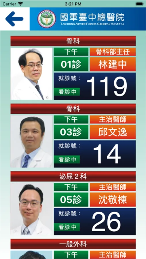 安裝國軍臺中總醫院APP「行動資訊服務系統」,讓您隨時隨地一手掌握就診資訊,包括看診進度、看診提醒、行動掛號、門診表、衛教新知、最新消息、醫療團隊介紹、交通資訊、電話快撥等服務,歡迎民眾踴躍下載使用。我們也將不定期提供系統功能升級與更新版本。