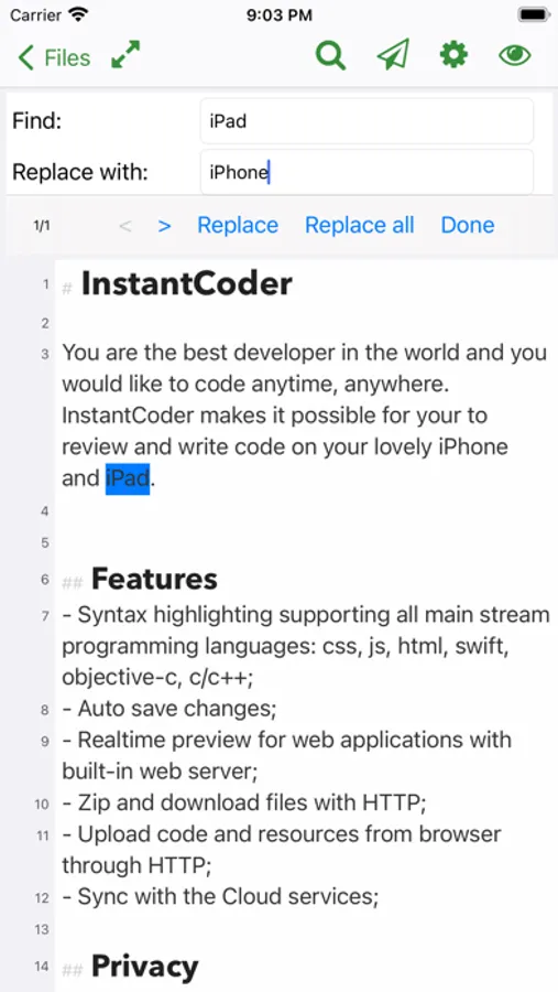You are the best developer in the world and you would like to code anytime, anywhere. InstantCoder makes it possible for you to code apps on your lovely iPhone and iPad.