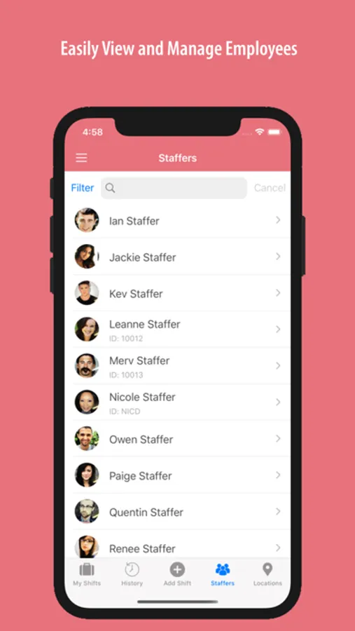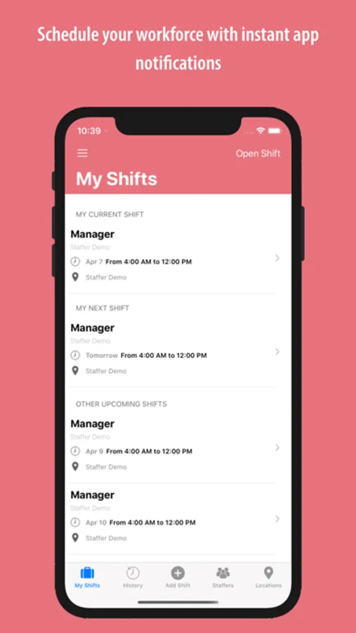 Stop calling and texting your employees to cover a shift - Staffer connects employers and employees in a painless fashion. Through cloud based technology and a suite of apps, staffer allows you to schedule your workforce and instantly notify them of upcoming work and/or shifts.