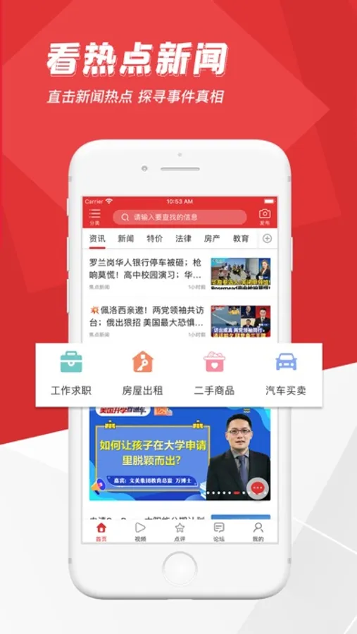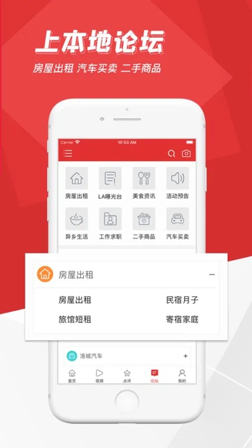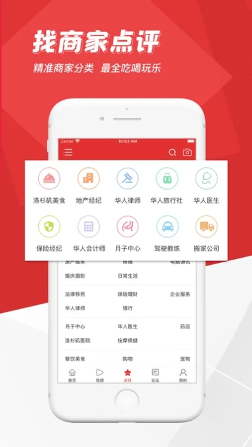 包含华人论坛、商家点评、特价信息、新闻头条、生活视频等多个华人生活版块。