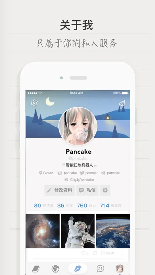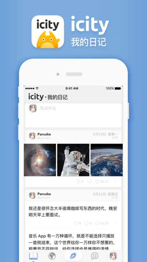 iCity 是你的专属私人网络。在这里,我们记录生活、交流见解,无需在意别人眼光,不必迎合他人趣味。纷繁浮杂的世间,iCity 为你构建一片新世界。