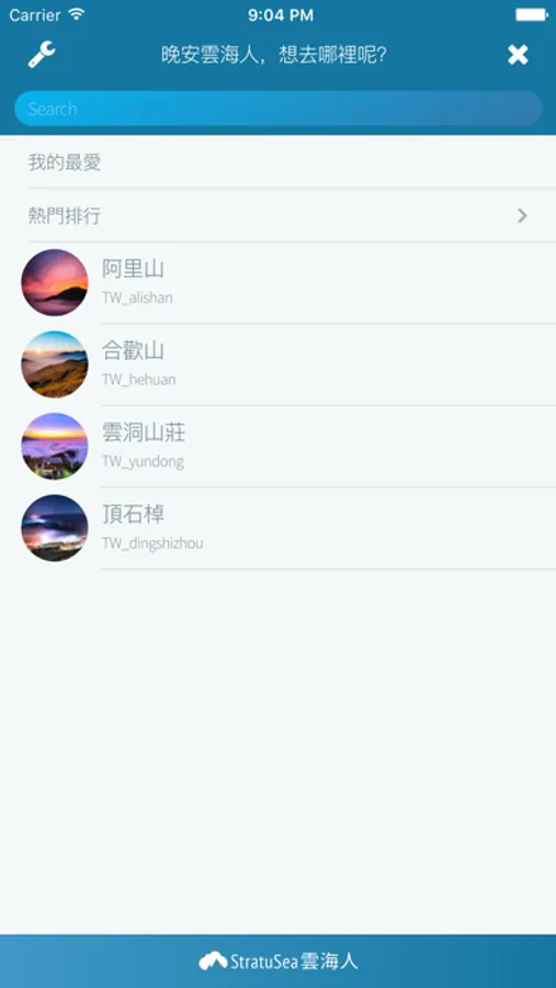 目前提供地區:大屯山、合歡山、阿里山、雲洞山莊、頂石棹、隙頂、梅山36彎。