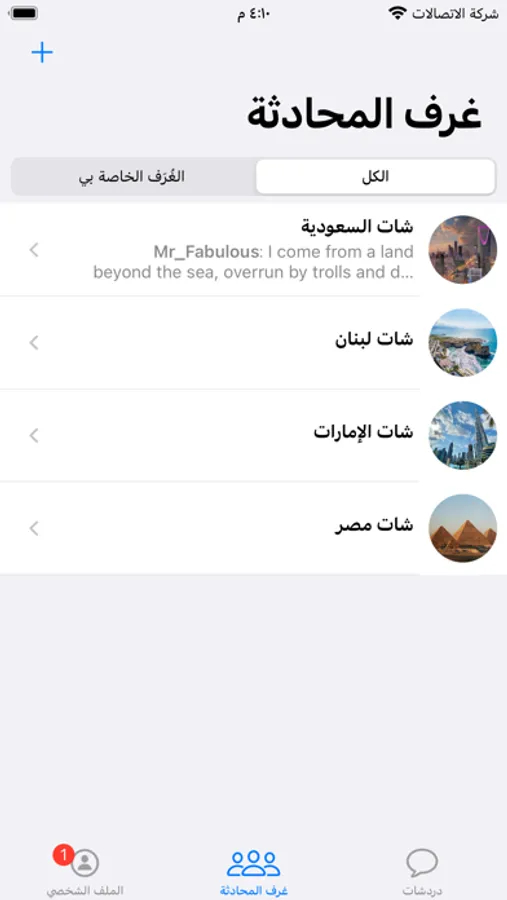 بامكانك اختيار غرفة محادثة او بامكانك اضافة غرف خاصة بك وحيث يمكنك ان تطرد او تمنع دخول اي مستخدم يخالف قوانين الغرفة خاصتك.