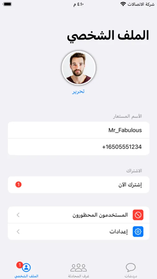 هو تطبيق شات عربي يتيح لك التواصل مع المستخدمين بشكل مباشر او بغرف محادثة.