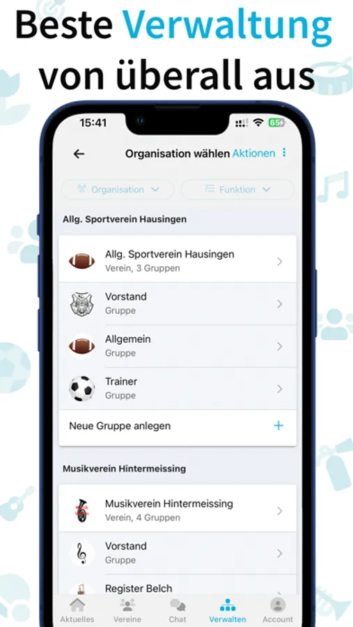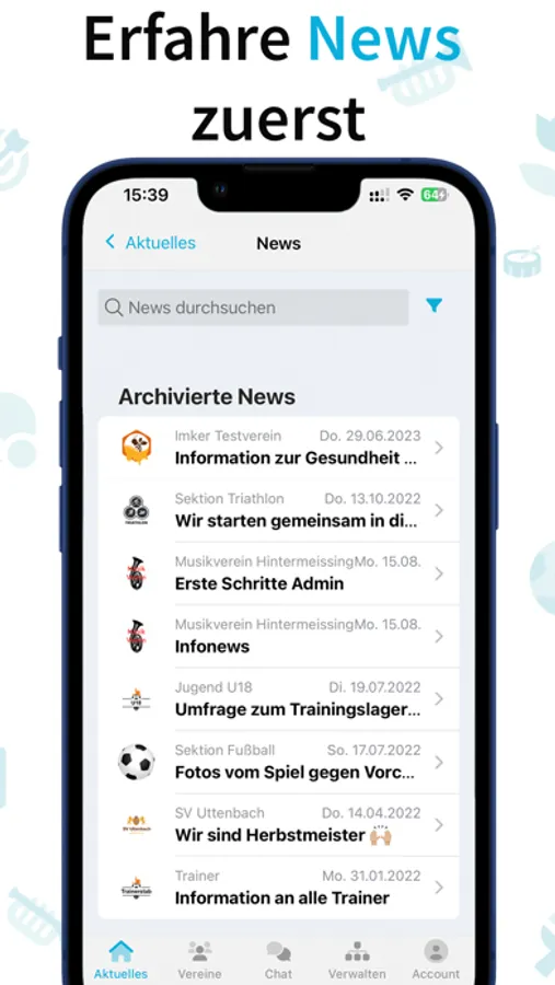 Dabei verbindet die App die Verwaltungstätigkeiten des Vorstandes mit der Kommunikation zu den Mitgliedern in einem Tool. Mitglieder werden dadurch wieder zentral ins Vereinsgeschehen eingebunden und können so ihren Verein aktiv mitgestalten. Vorstände können sämtliche Bereiche im Verein von Terminen, über Mitglieder bis hin zu Finanzen digital verwalten und sparen sich so enorme Zeit bei gleichzeitig steigender Datenqualität.