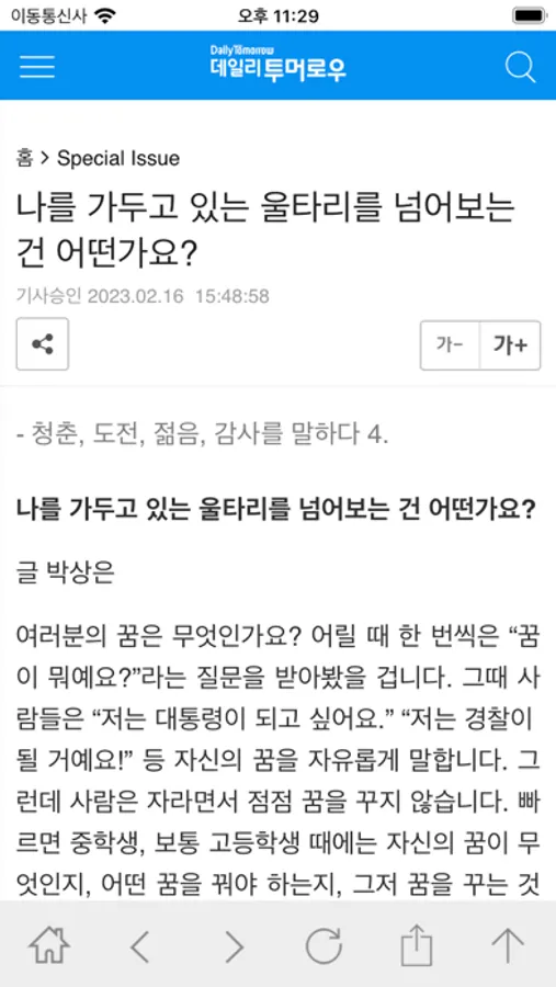 데일리투머로우에서는 글로벌 리더를 위한 캠퍼스 매거진 Tomorrow의 기사와 함께 매일 업데이트 되는 국내외 주요 소식, 대학가 뉴스 외에도 글로벌 리더를 위한 다양한 기사를 만날 수 있습니다.