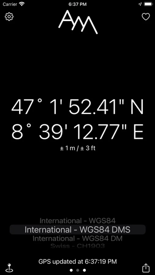 - altitude in meters and feet including accuracy