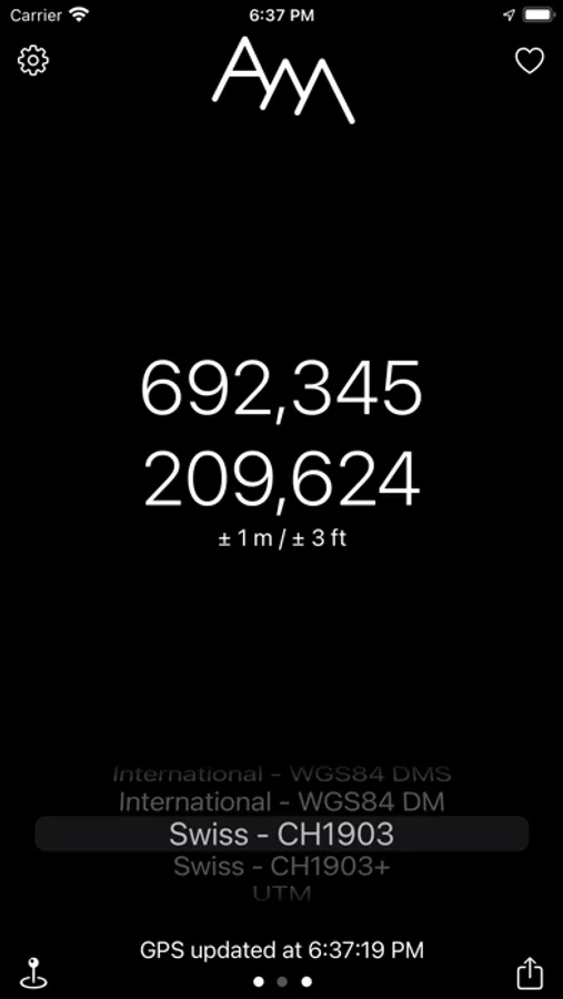 - your position in several coordinate systems (International, Swiss, UTM, MGRS)