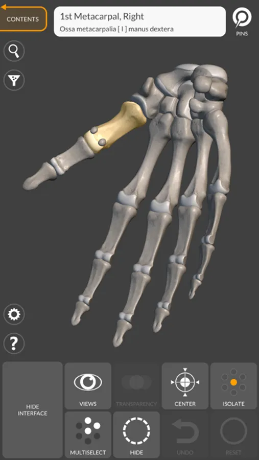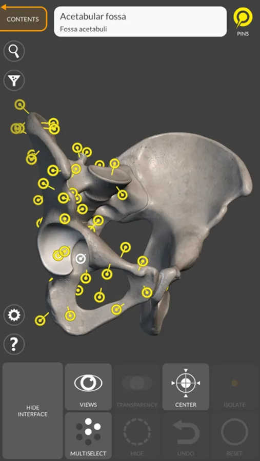 • Interactive Pin allow visualization of the term relative to every anatomical detail