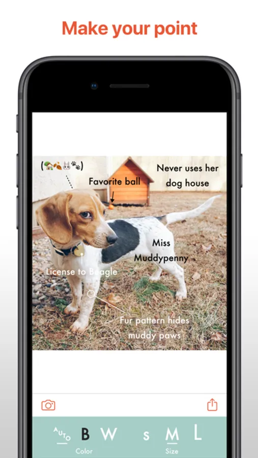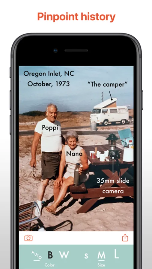 Tell the whole story by adding pointers, labels, descriptions, and commentary to your photos.