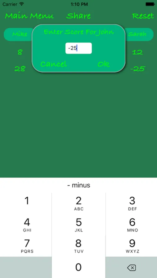 In this app you can record the scores very easily and can erase the wrong entries with a simple swipe.