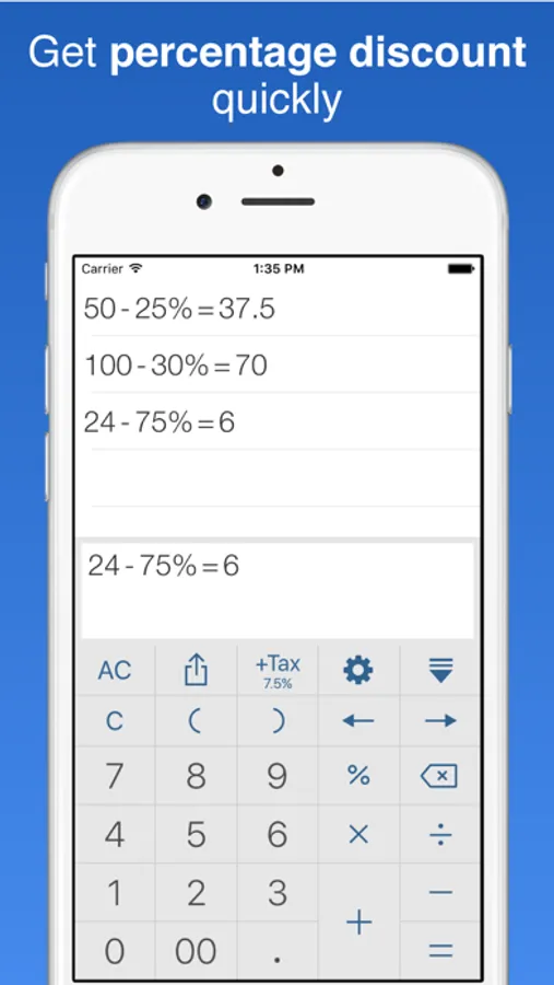 This is a totally easy-to-use calculator. It has all the basic features you'd expect from a calculator, as well as additional useful functions like the ability to calculate sales tax and discounts.
