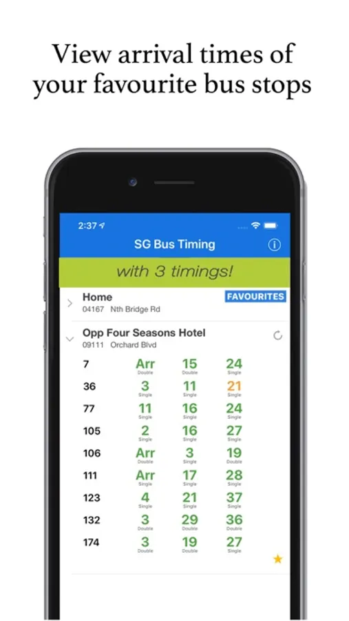 2. Shows up to 3 bus timings. Now you can plan your journey in SG on SMRT or SBS buses before even leaving your home.