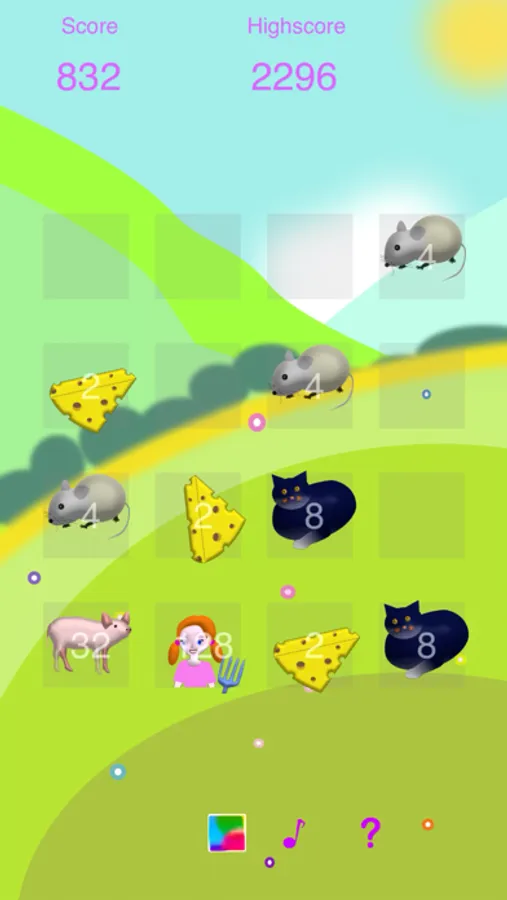 This is the classic game 2048 with music pictures and sounds related to the farmer in the dell nursery rhyme.